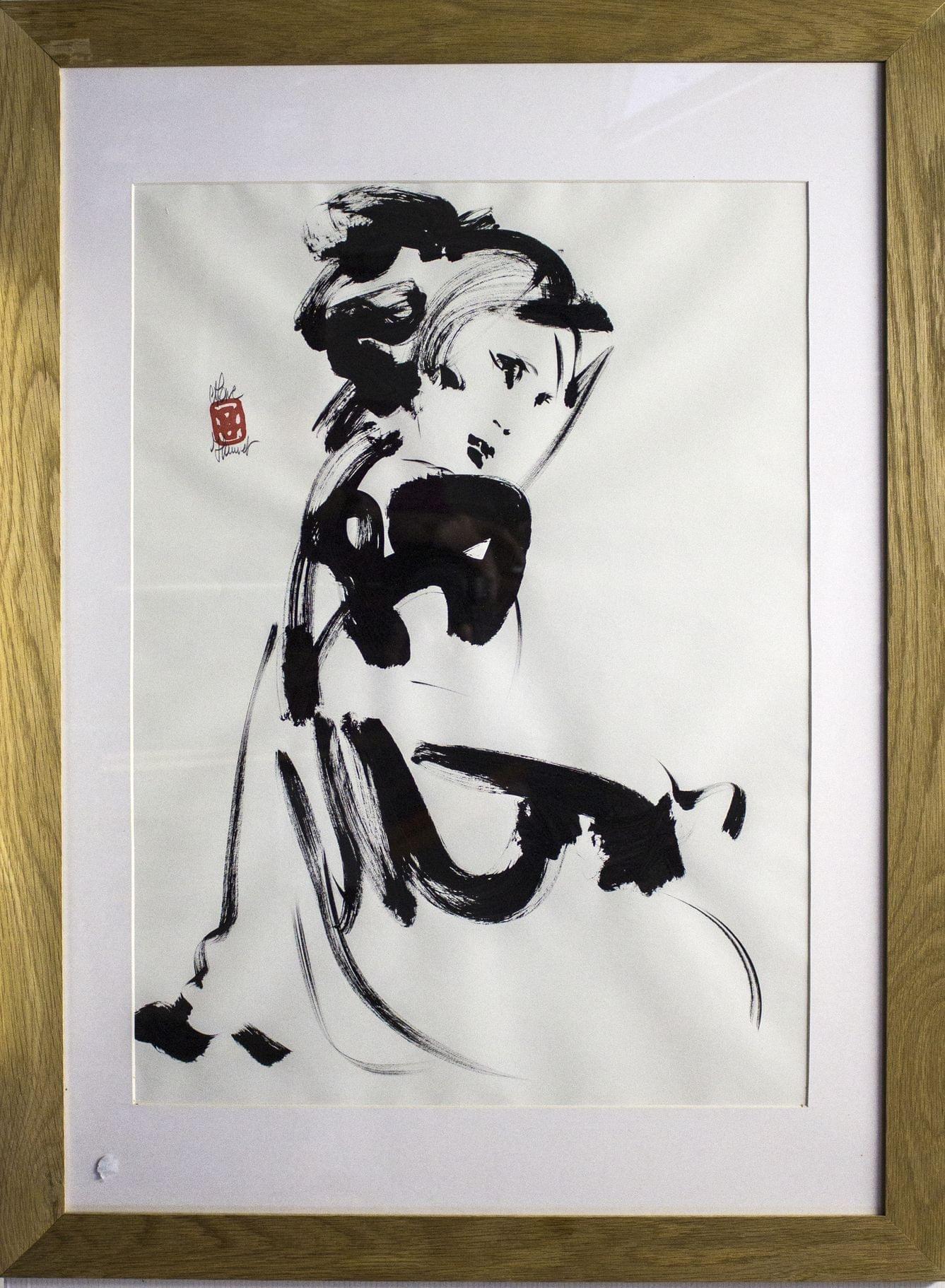 Geisha, encre sur papier, signature non indentifiée, 55x40 cm