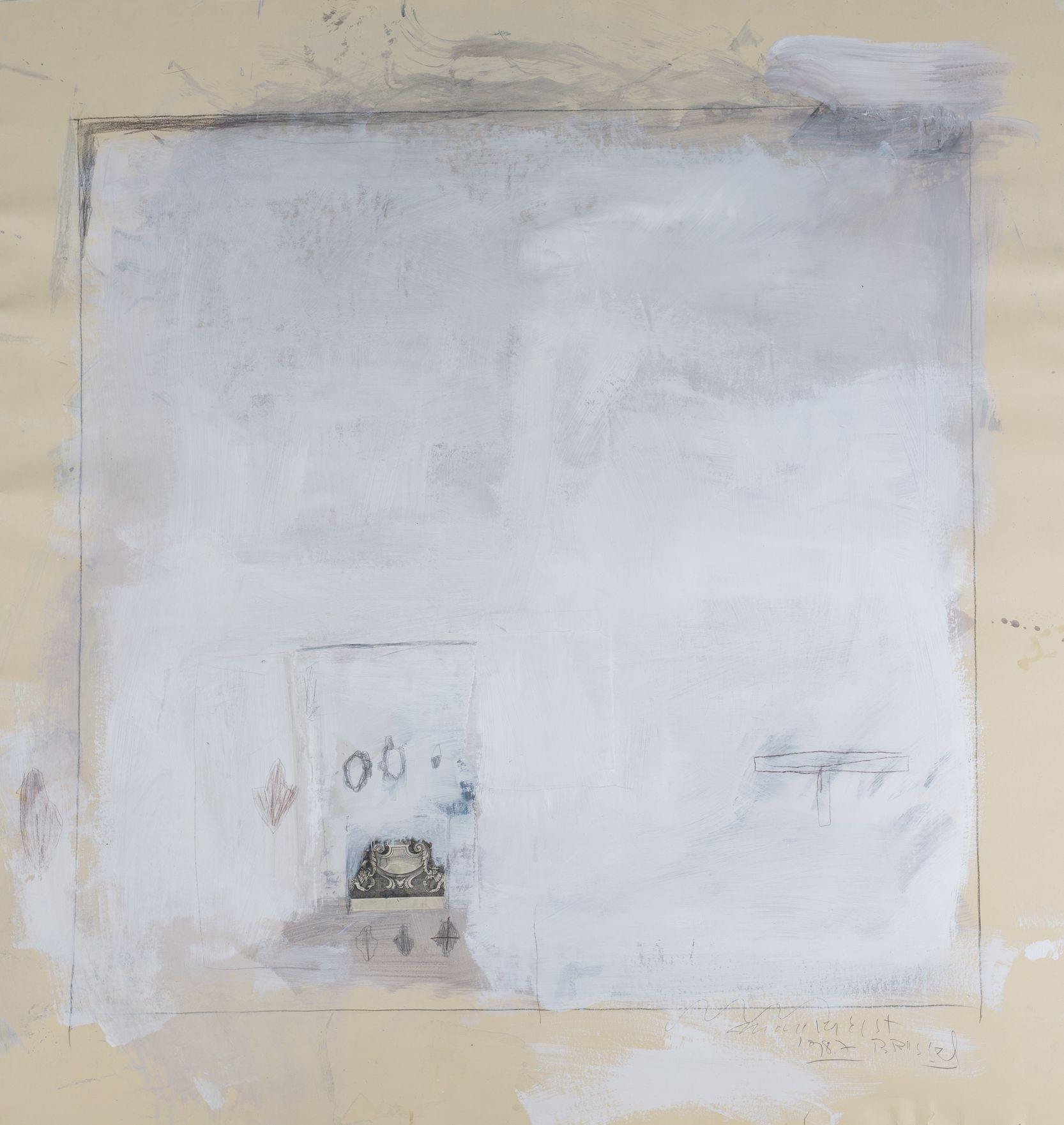 Sans titre, technique mixte sur papier marouflé, signée, située Brussel et datée 1987, 134x125 cm. Collection David Sassoon