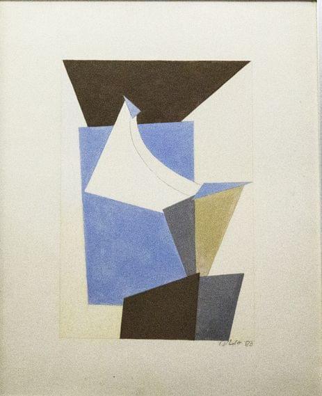 Composition polyédrique, aquarelle et gouache sur papier, 21x14 cm