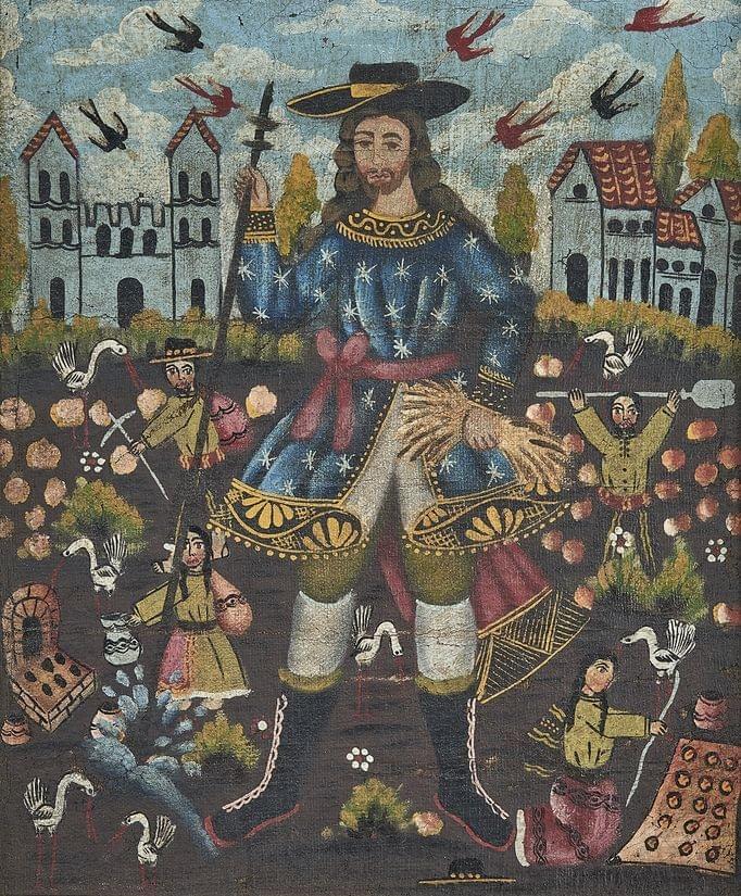 Saint Isidore, huile sur toile marouflée sur carton, 35x30 cm