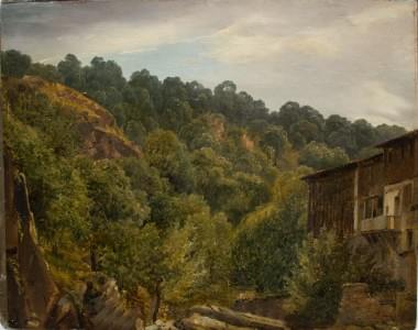 Rivière encaissée, huile sur papier marouflée sur carton, 24x31...