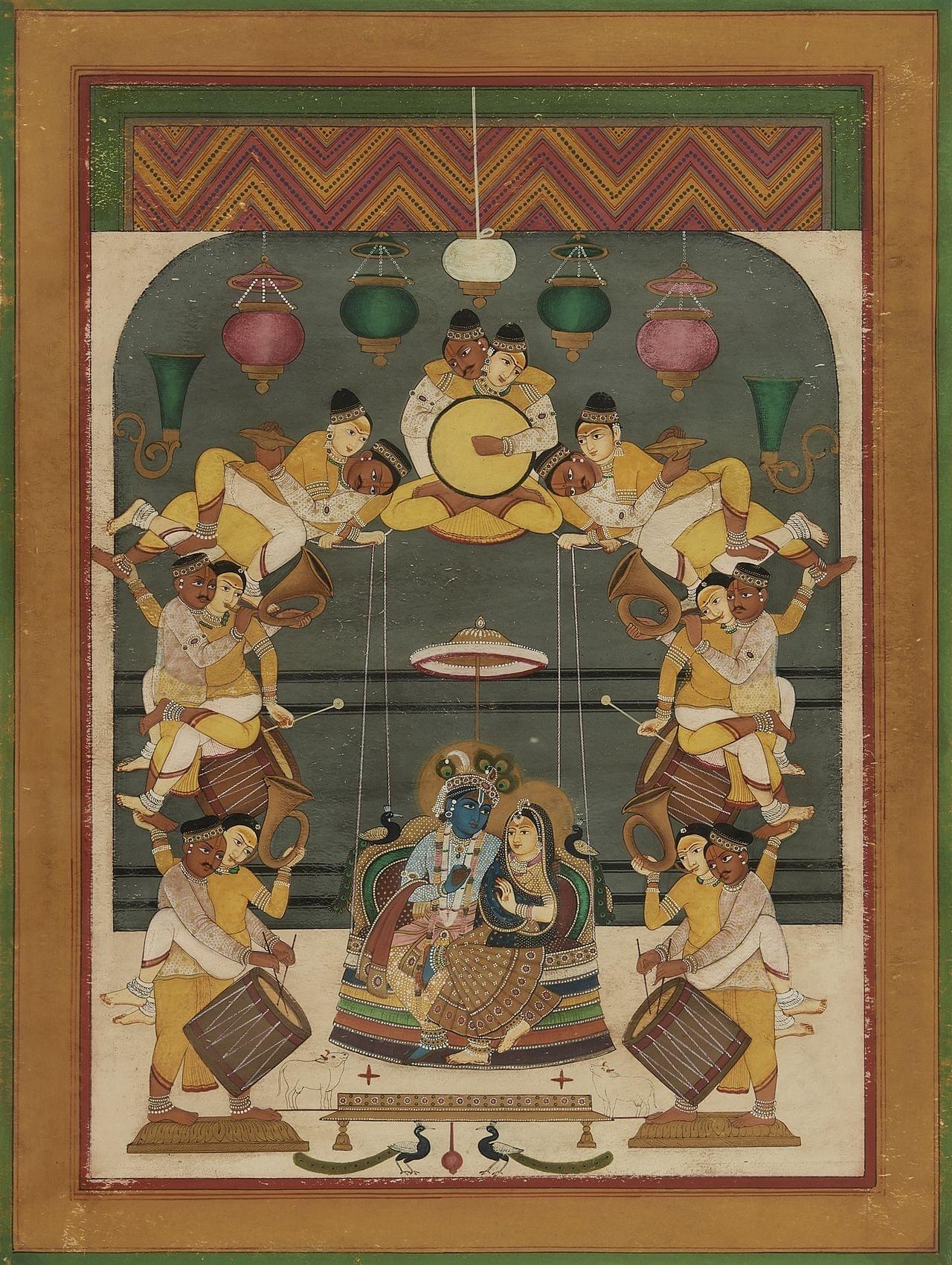 Radha et Krishna, pigments sur papier, 42x32 cm