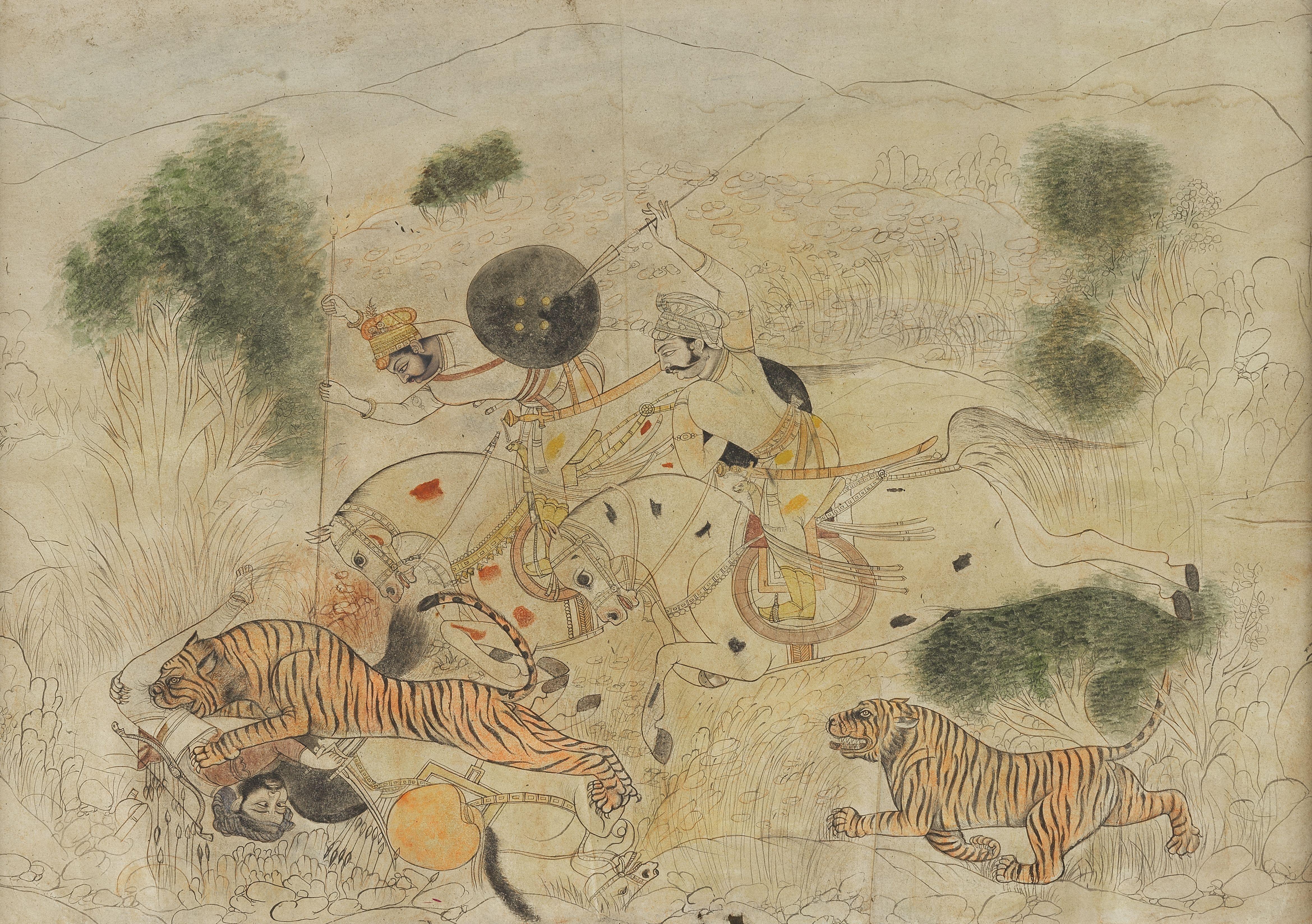 Chasse au tigre, gouache sur papier, 62x81 cm