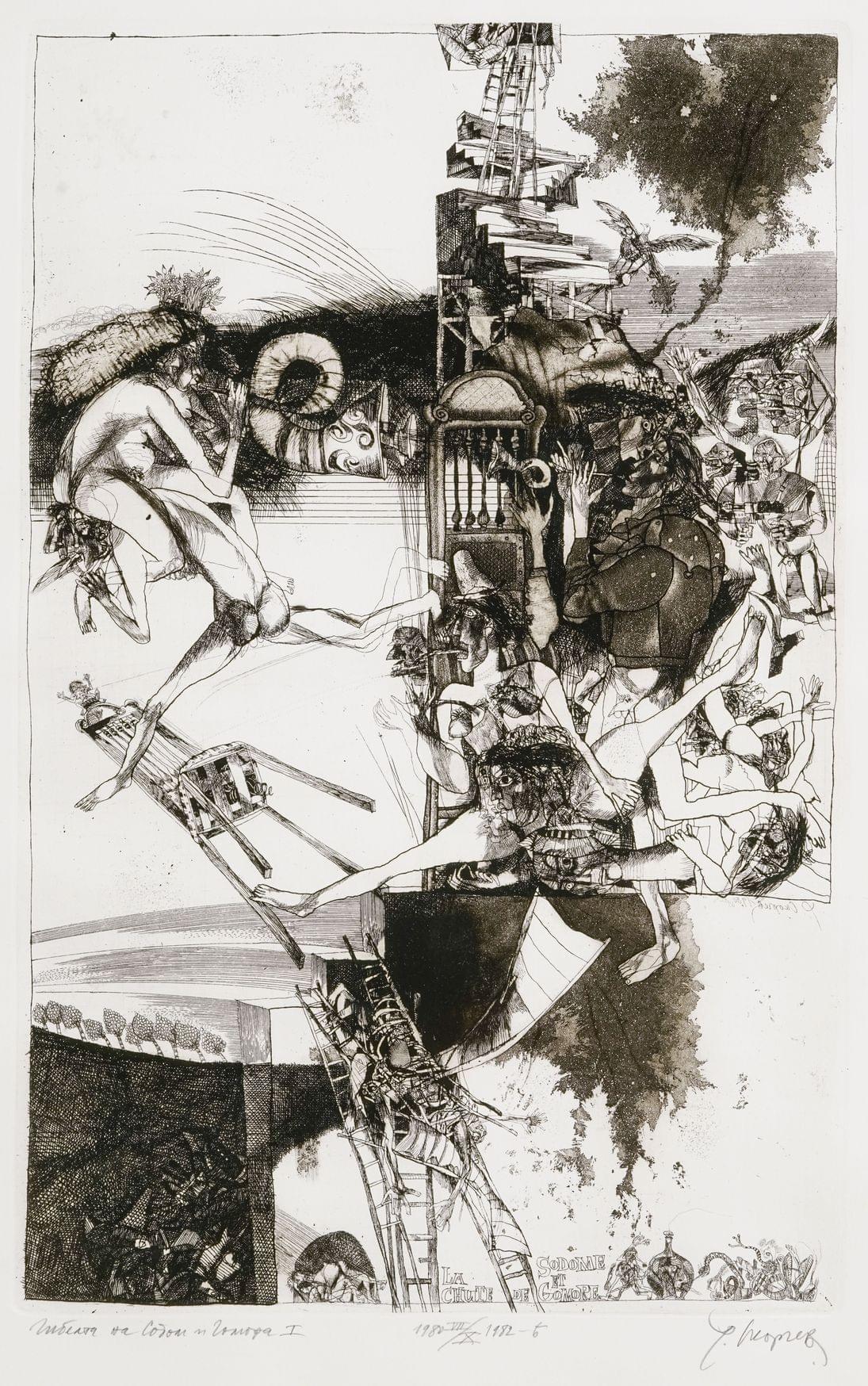 La chute de Sodome et Gomore, 1980-1982, gravure en noir, signée, datée et numérotée 1980 VII/X 1982, 49x31 cm