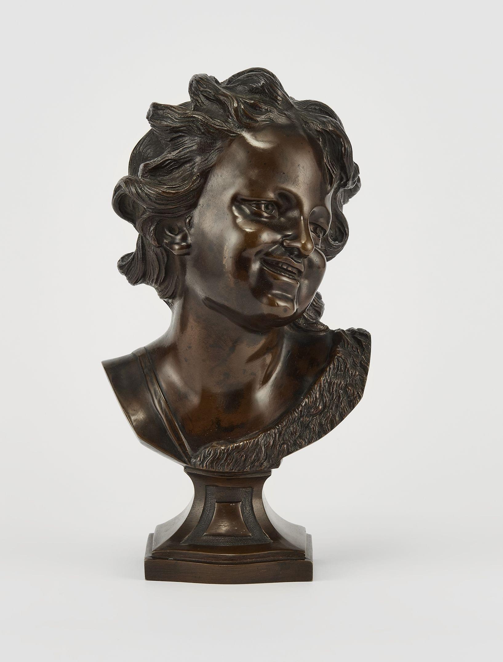 Buste de jeune homme rieur, bronze à patine brune, signé Antony, H 27 cm