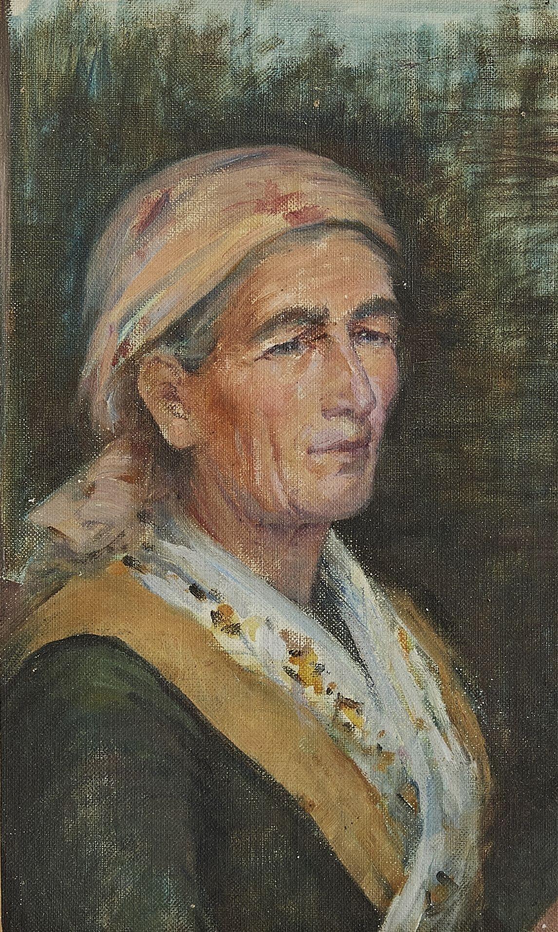 Valaisanne au fichu, huile sur toile marouflée, 30x18 cm