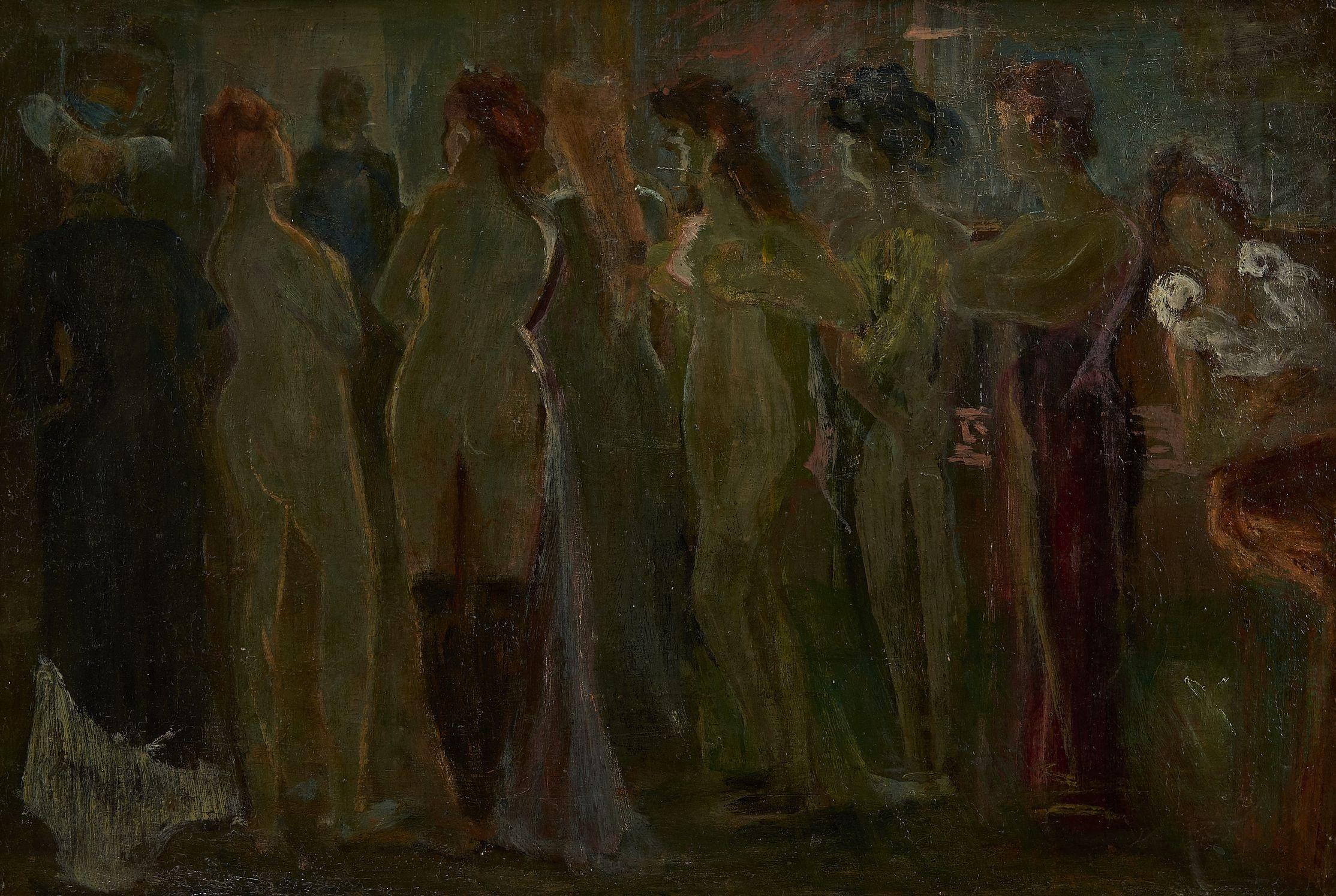 Scène de bordel, huile sur toile, 38x55 cm