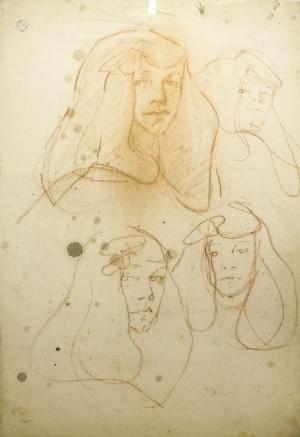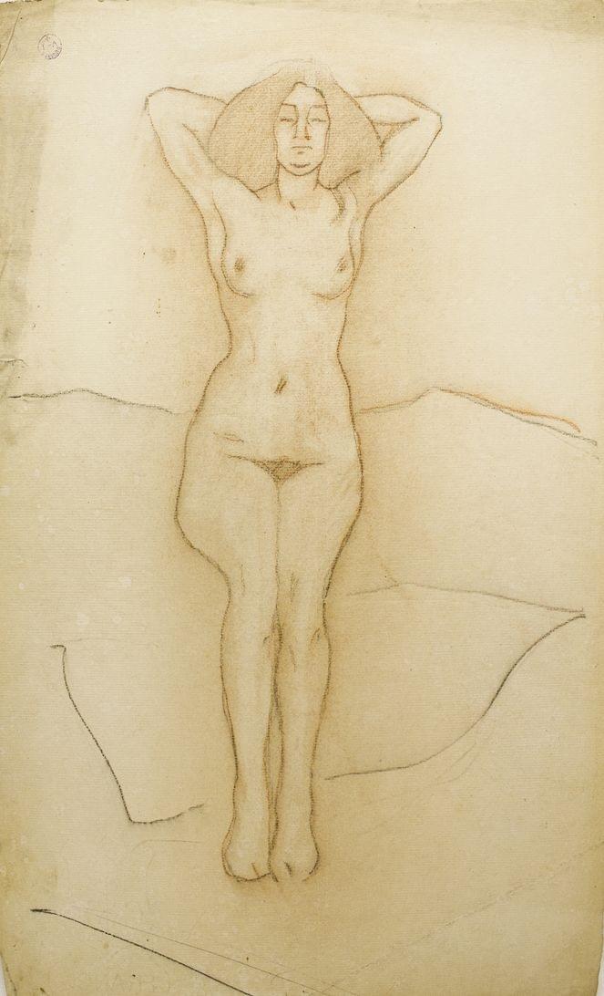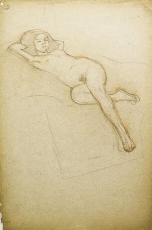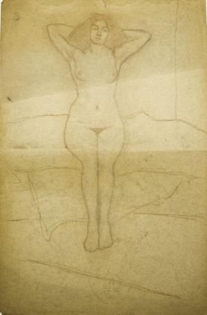 Etudes de nus féminins et paysages, ensemble de huit dessins à la craie, mine de plomb, sanguine, de 48x31 à 53x19 cm