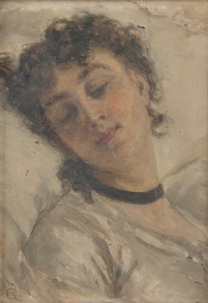 Jeune femme endormie, huile sur panneau monogrammée BG, 17x12 cm