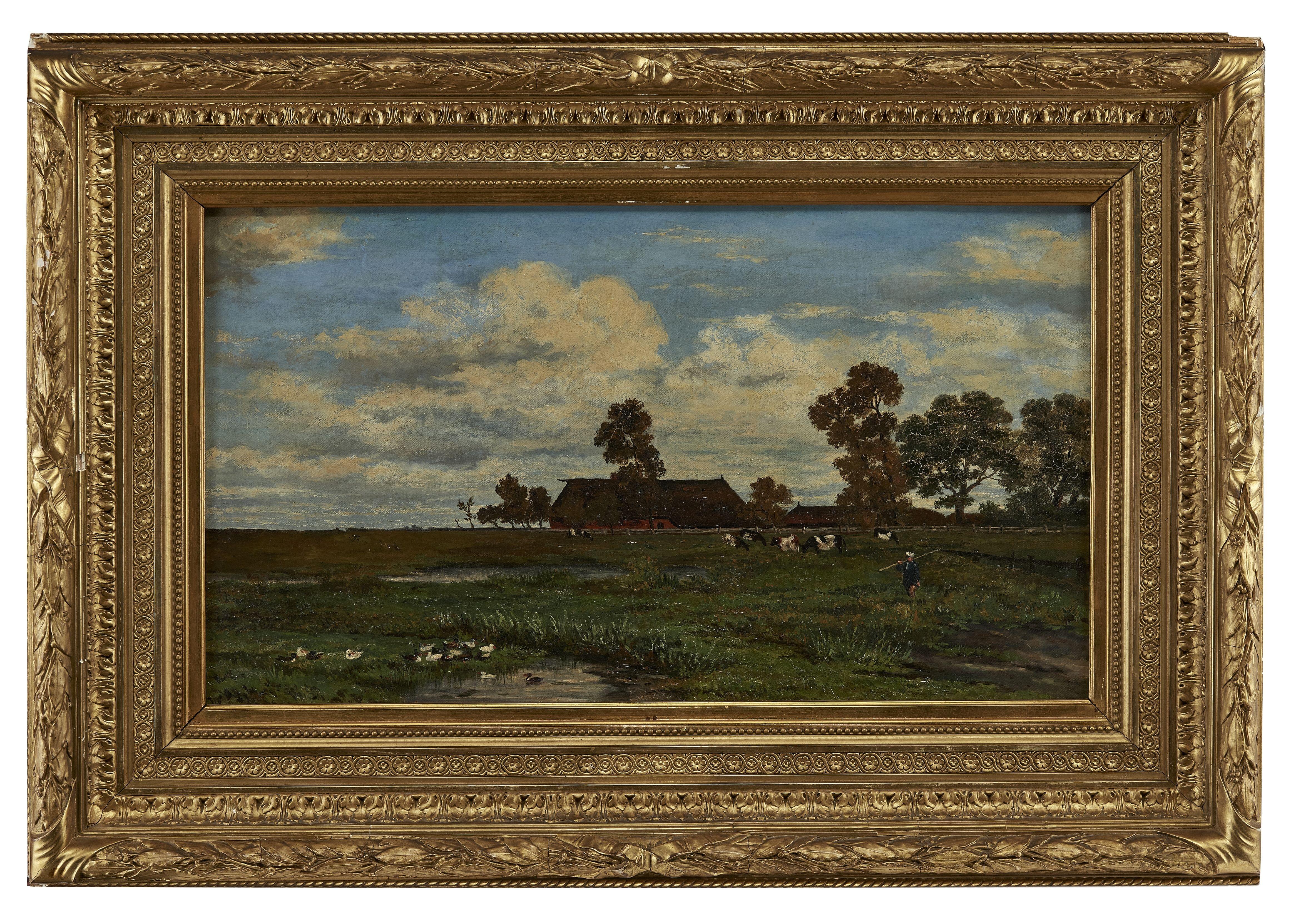 Pré aux vaches devant la ferme, huile sur toile, 39x65 cm