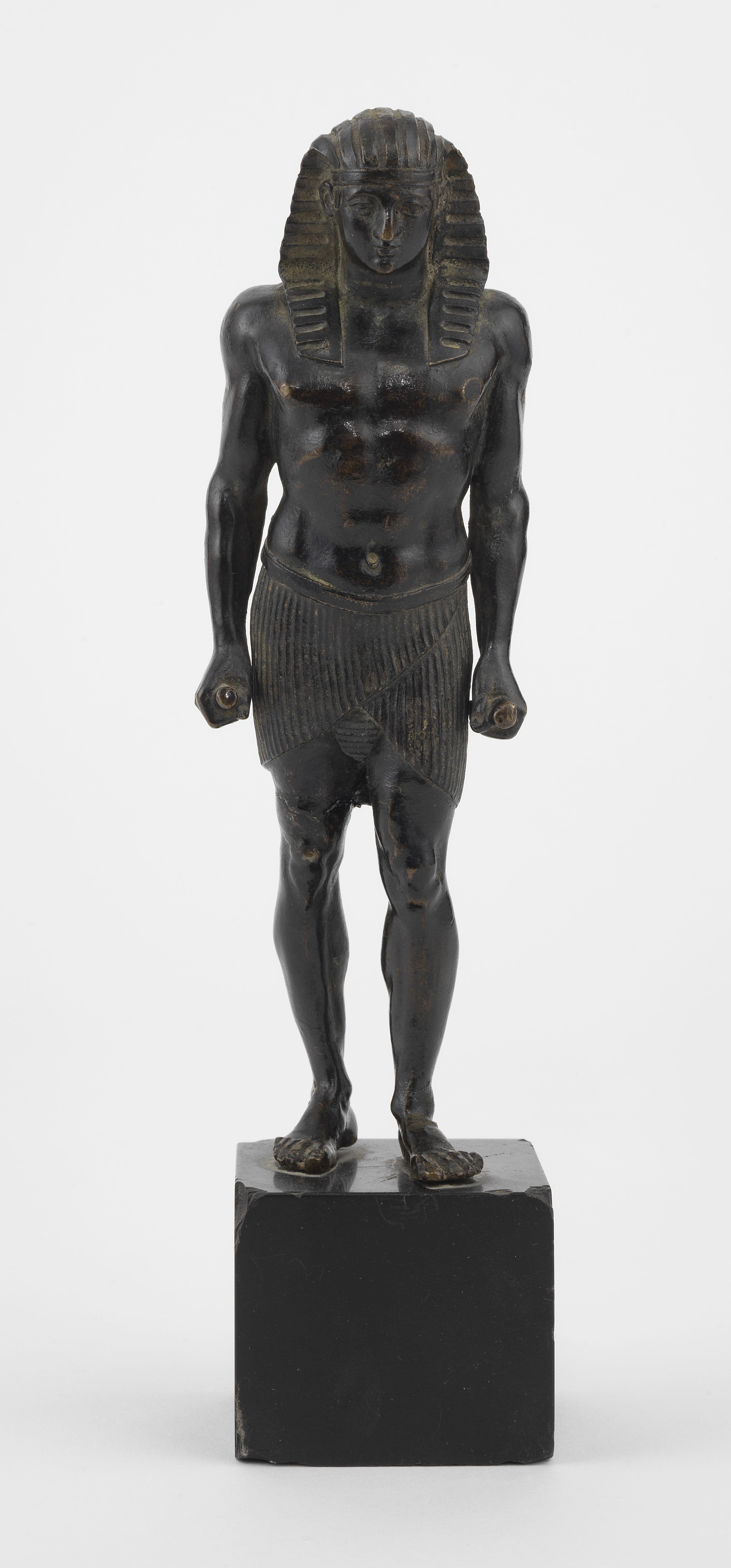 Egyptien en pied, bronze à patine brune, H 15,5 cm