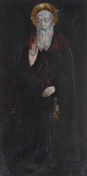 Saint Pierre et Saint Antoine, paire d'huiles sur panneaux, 61x33 cm