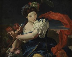Allégorie du printemps, huile sur toile, 65x82 cm. Cadre en bois sculpté et ajouré à motif de feuilles d'acanthes.