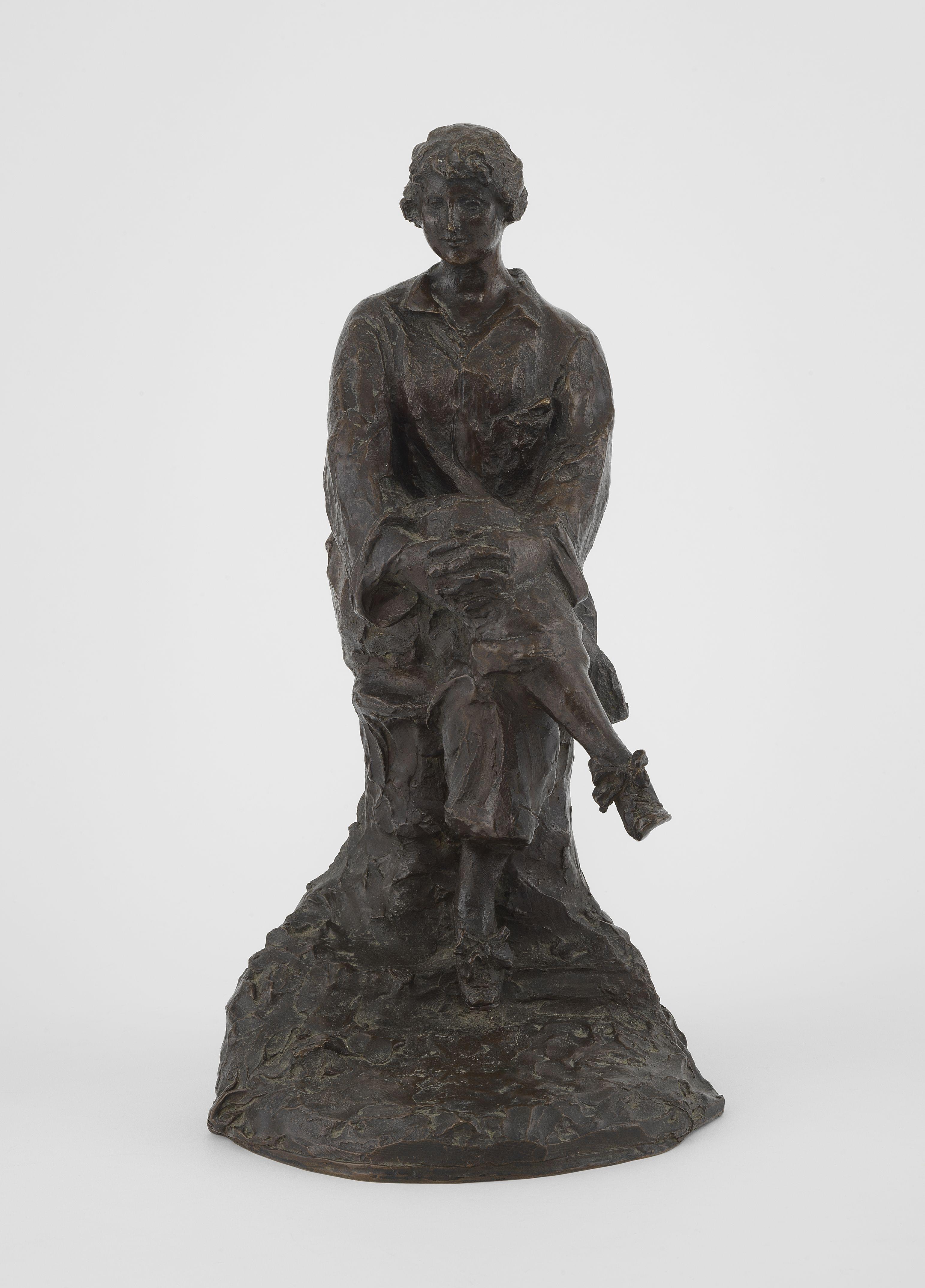 Femme assise, bronze à patine brune, signature non identifiée, H 40 cm