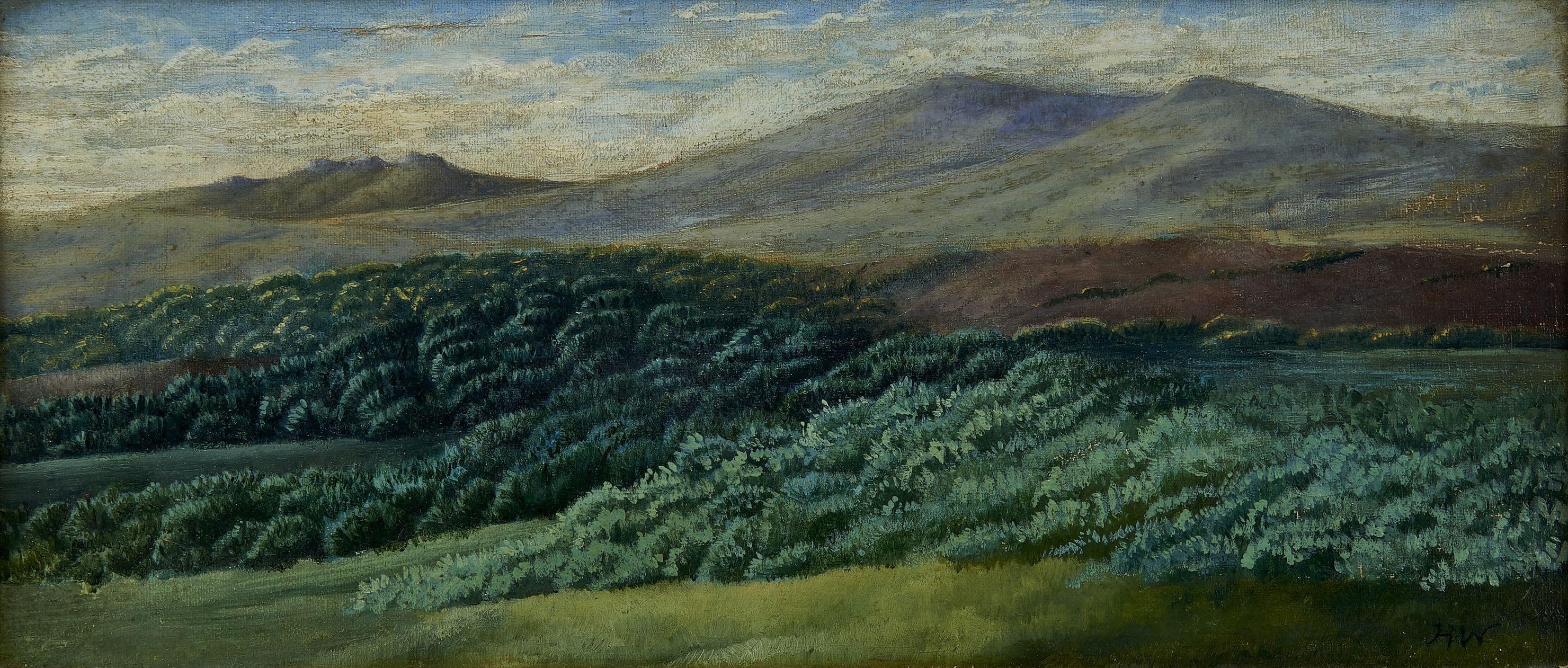 Paysage italien, huile sur toile, monogrammée HW, 17,5x39,5 cm