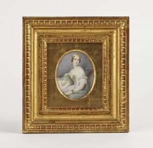 Portrait d'une jeune femme à la tiare, miniature sur ivoire, 9x7...