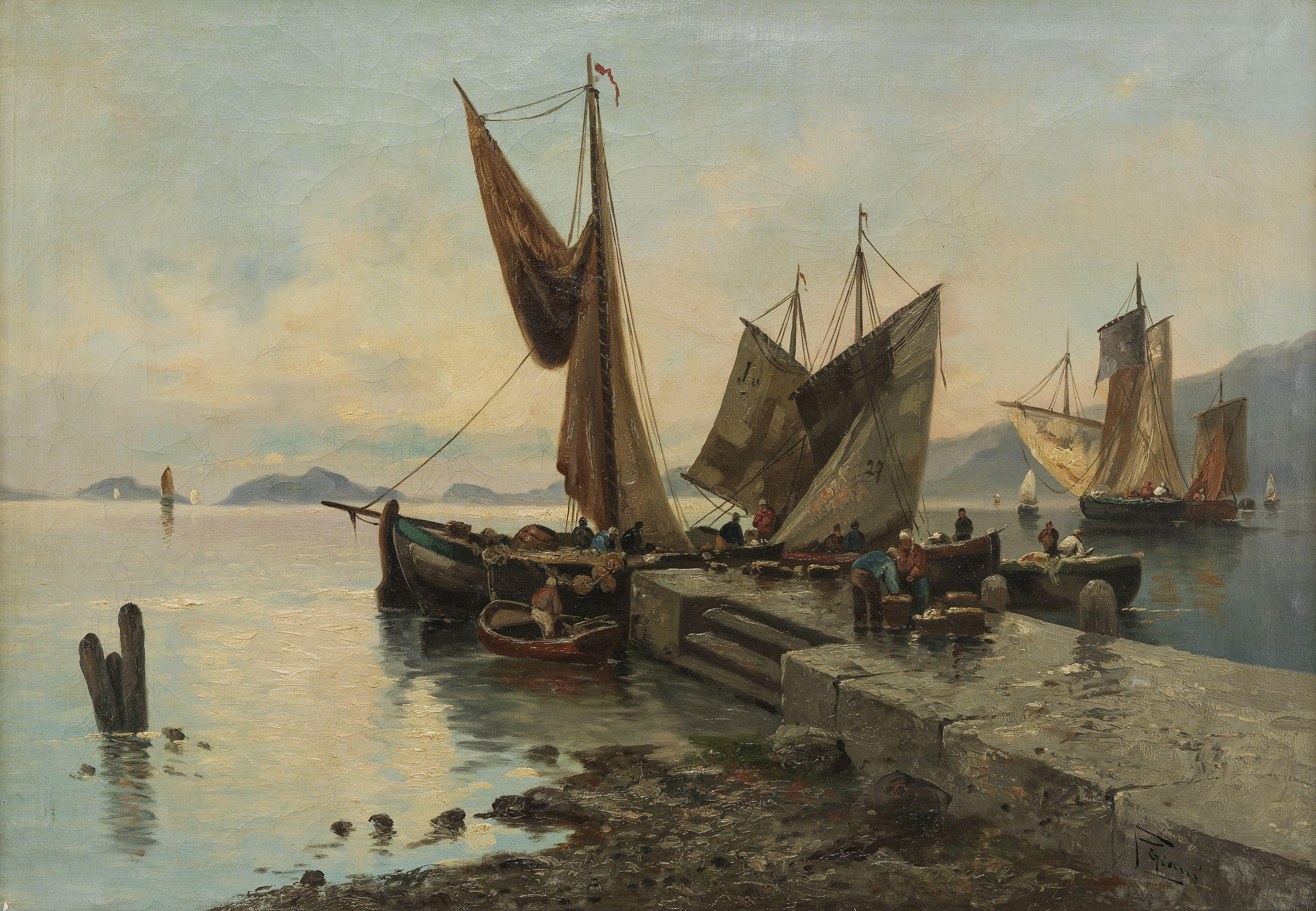 Bateau à quai, huile sur toile, signée, 48x69 cm