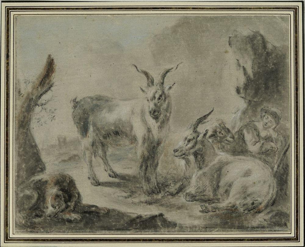 Scène animée près d'un plan d'eau, aquarelle et encre sur papier...