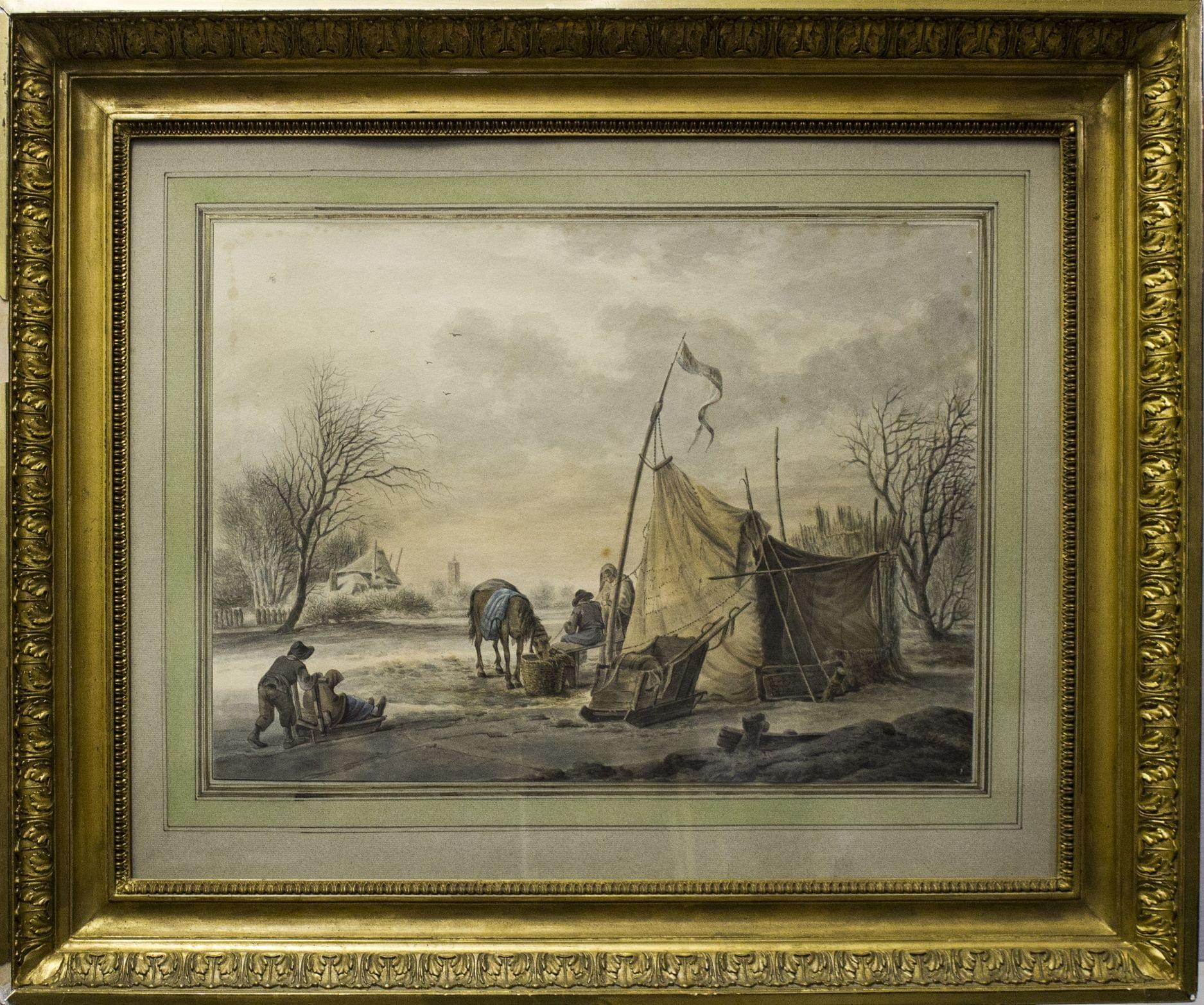 Paysan en hiver, lavis et aquarelle sur papier, 35x48 cm