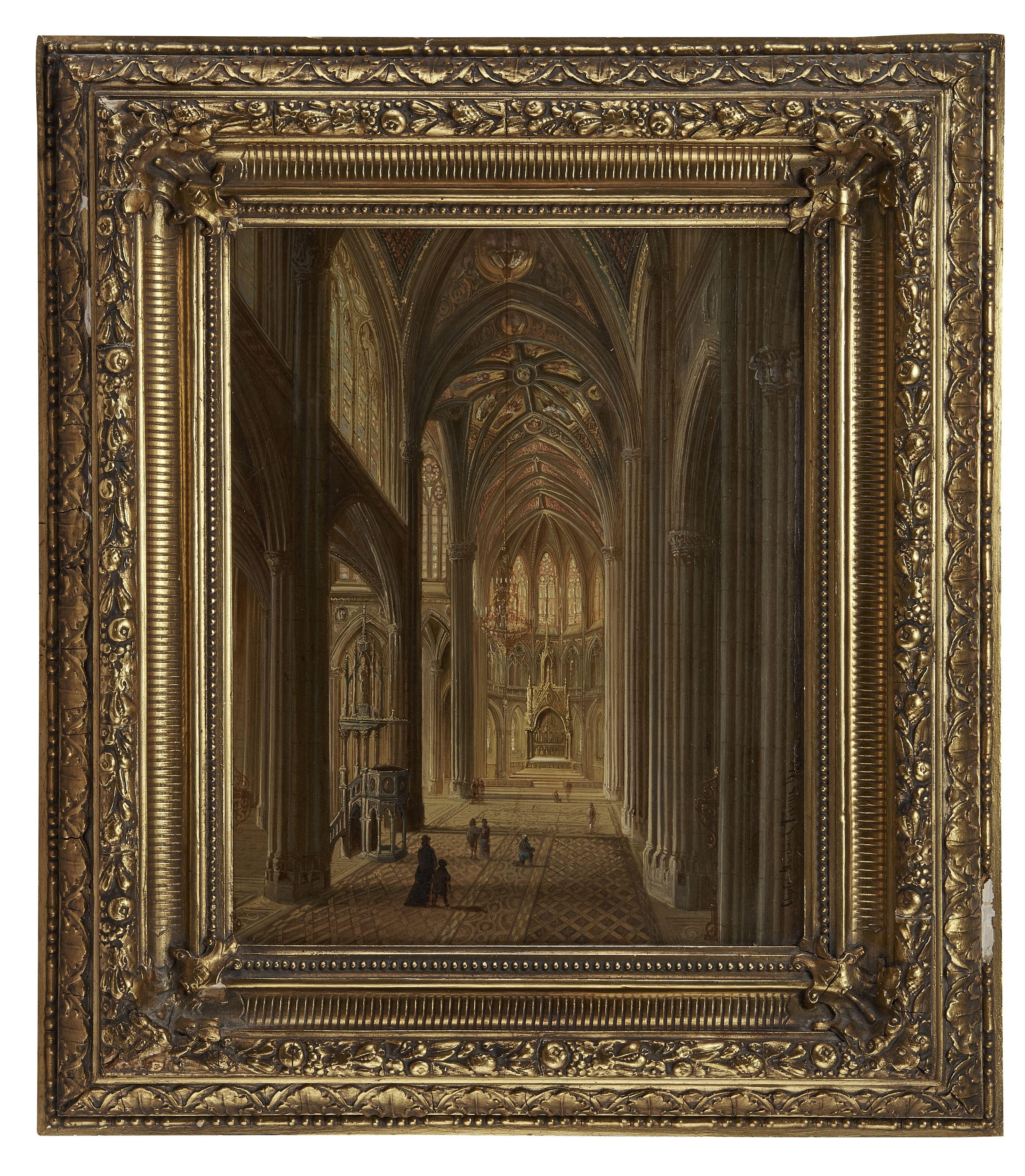 Intérieur d'église, huile sur panneau, 40x32 cm