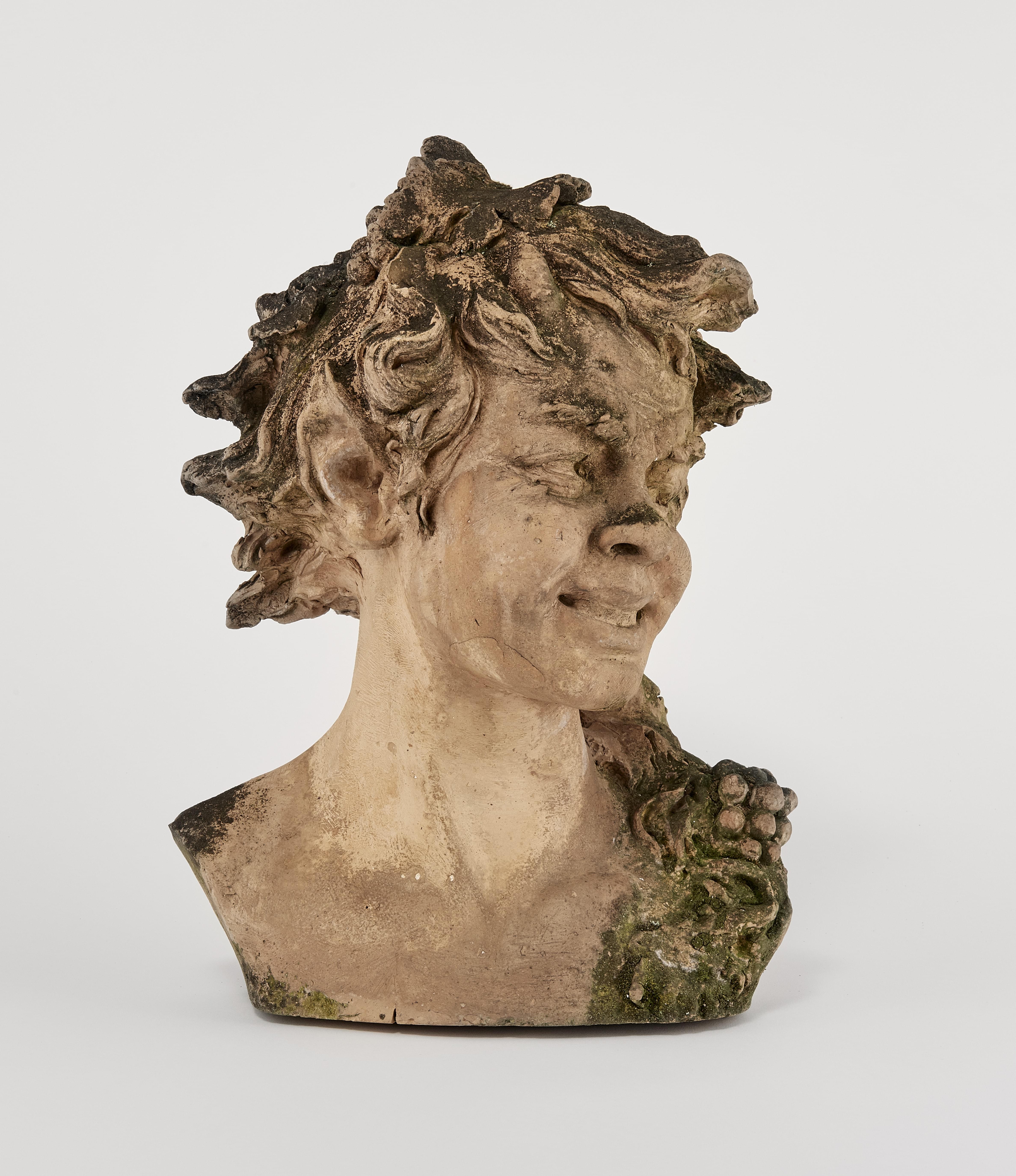 Buste de jeune satyre, terre cuite, signature non identifiée, H 38 cm