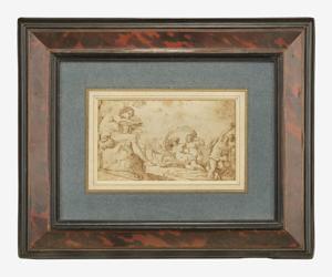 Tages et Heleno, paire de figures allégoriques de fleuves, encre...