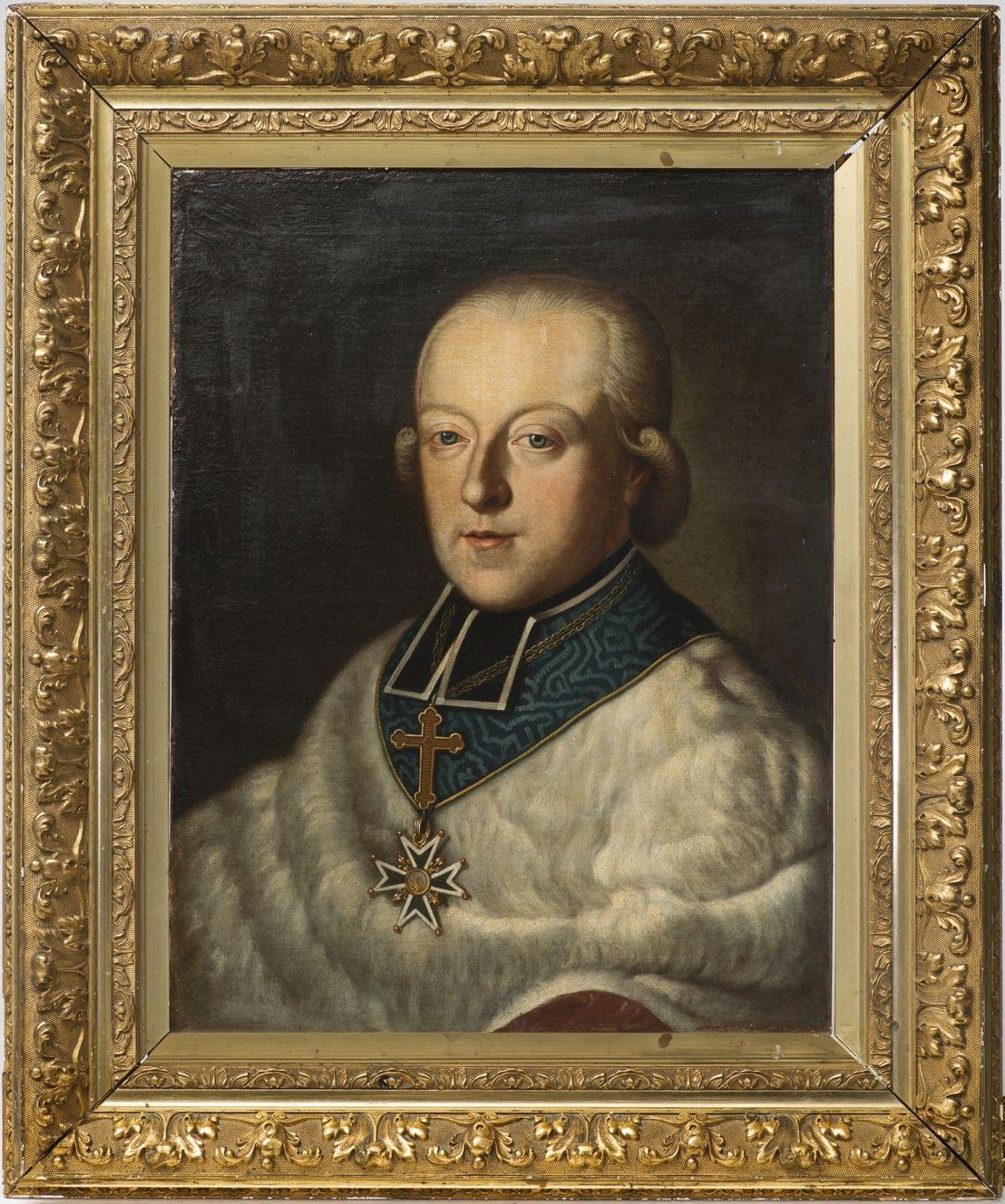 Portrait d'un ecclésiastique portant le cordon de l'ordre du Saint-Esprit, huile sur toile marouflée sur panneau, 57x44 cm