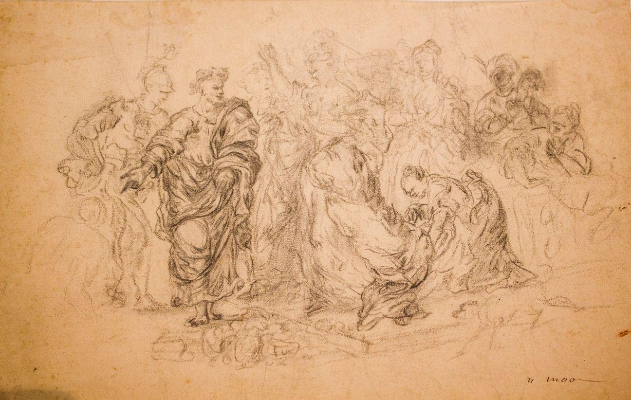 Scène antique, mine de plomb sur papier, 25x36 cm