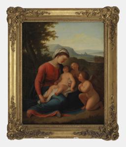 Vierge à l'Enfant avec deux anges, huile sur toile, monogrammée et datée 1838, 69x56 cm