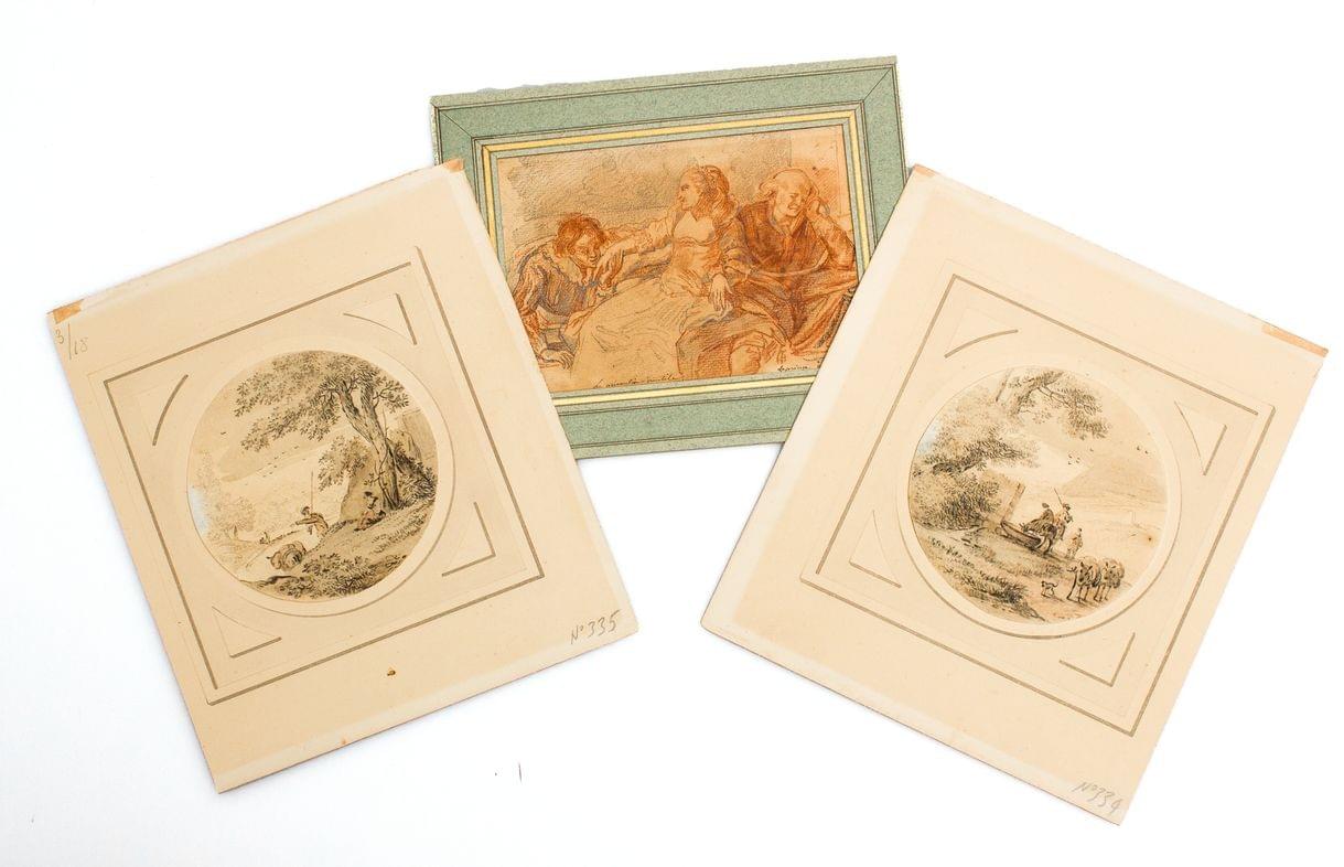 Ensemble de 9 dessins dont trophées, personnages et divers
