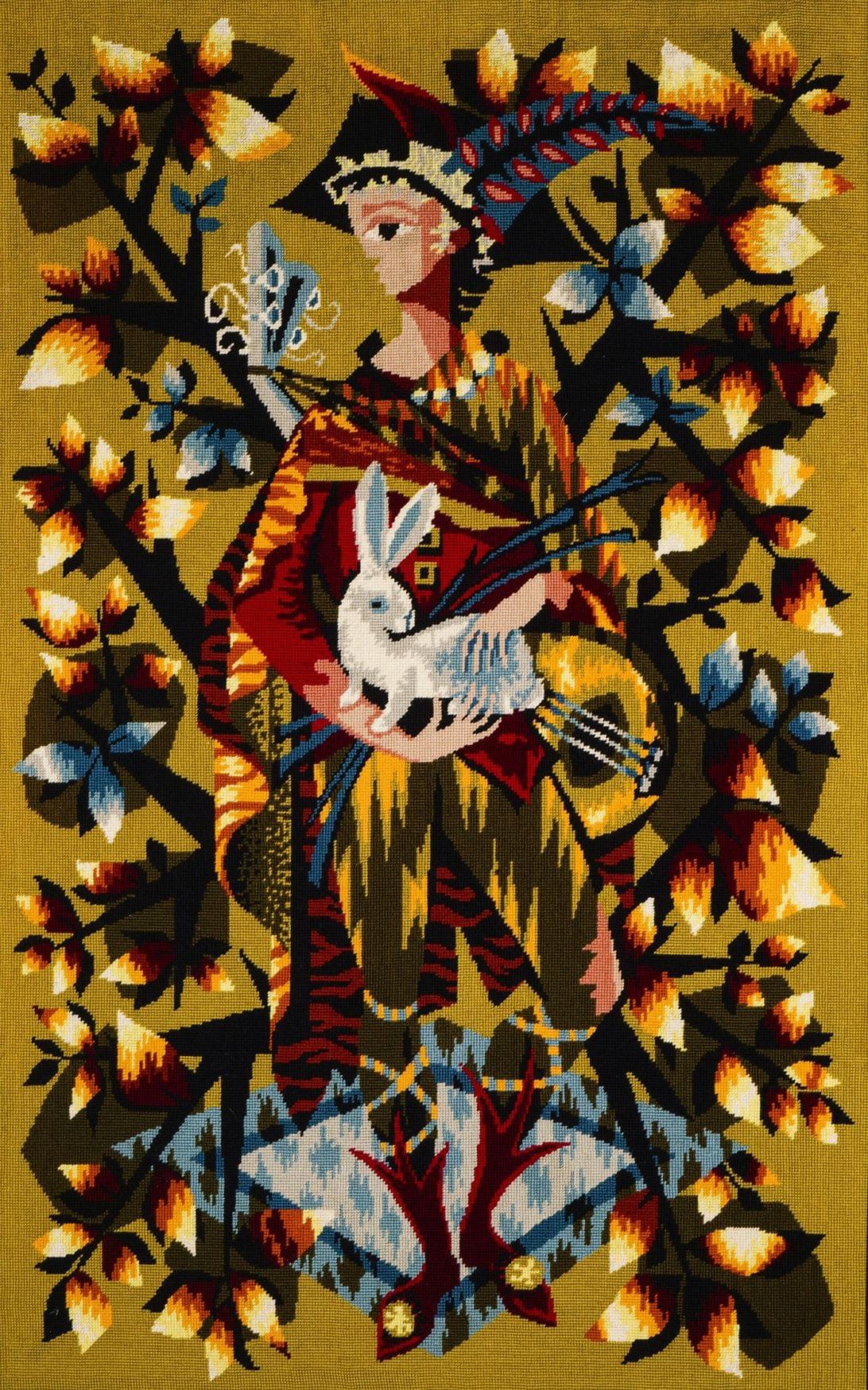 Musicien tenant un lapin, tapisserie, 125x75 cm