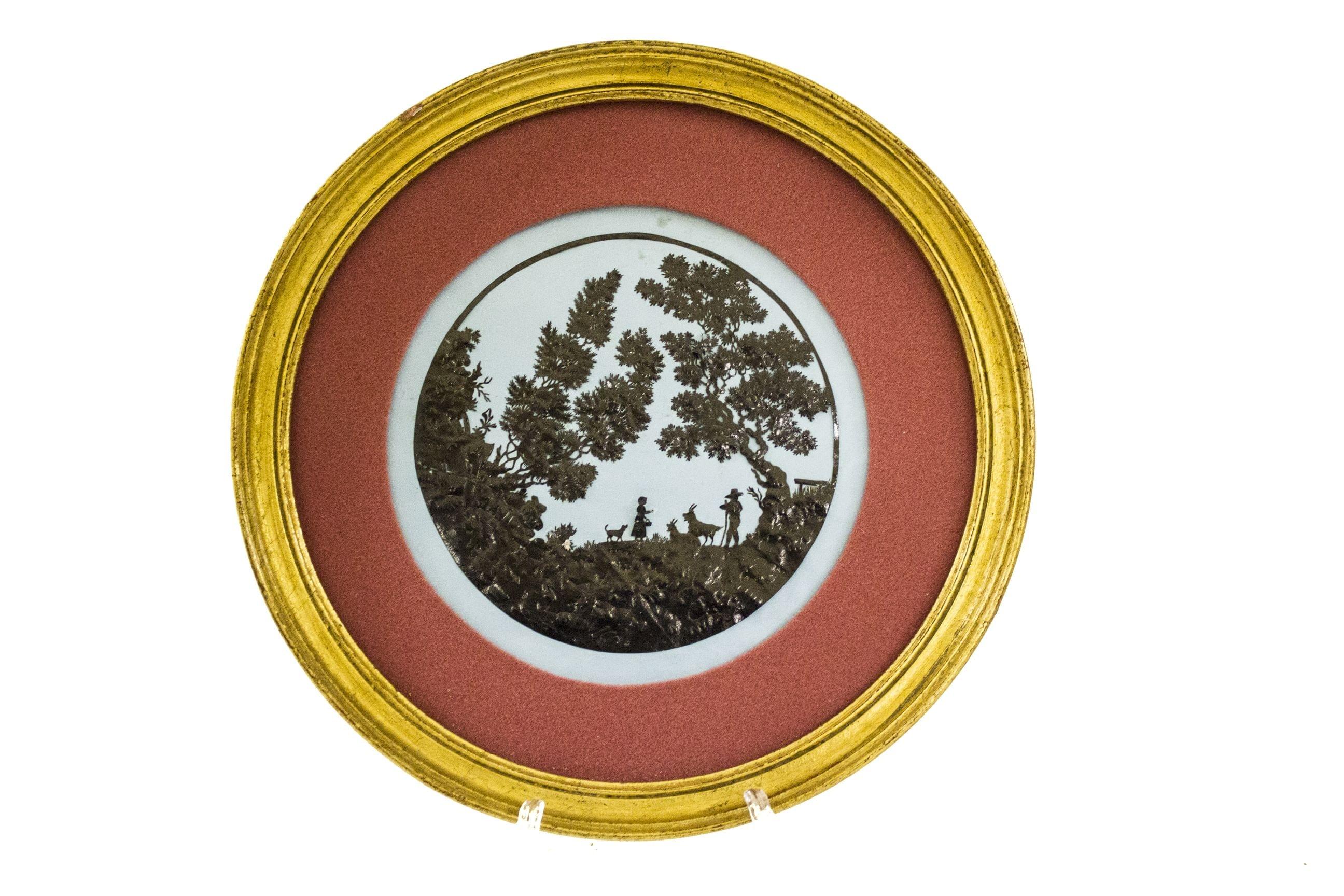 Silhouettes scène pastorales, découpage, D 11,5 cm