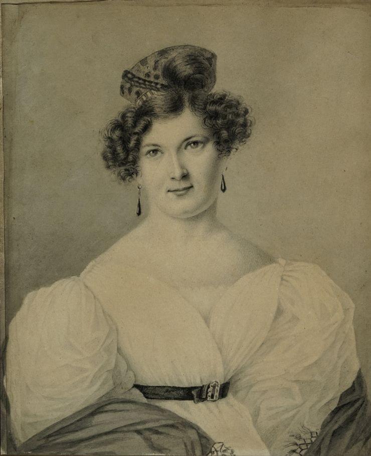 Portrait de Julie Bernard Romieux, lavis sur papier, début XIXe s, 22x18 cm