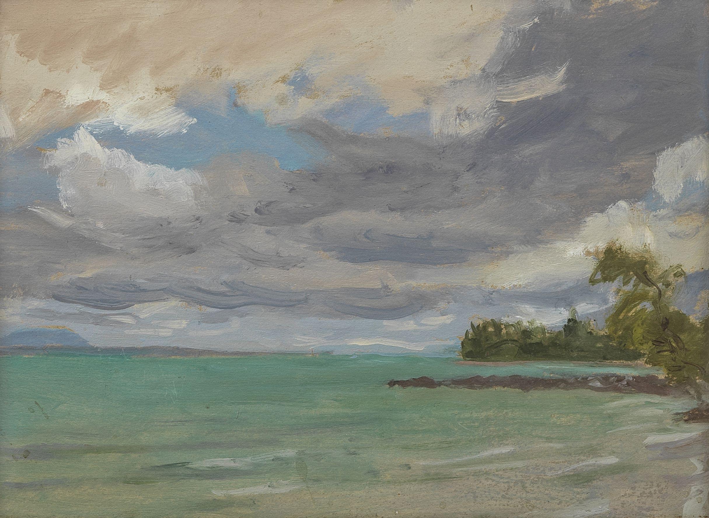 Vues du lac, deux huiles sur carton, 13x22 et 24x18 cm
