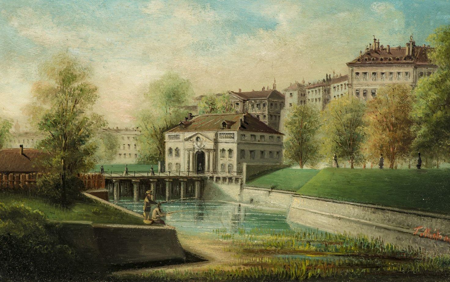 Porte de Neuve à Genève, huile sur carton, signée Metral, 15x24 cm