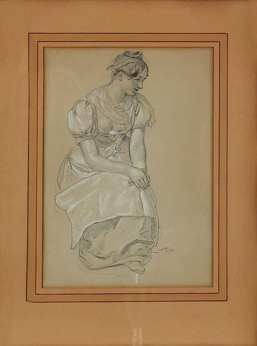Etude pour femme en costume, mine de plomb et gouache sur papier, 25x18 cm