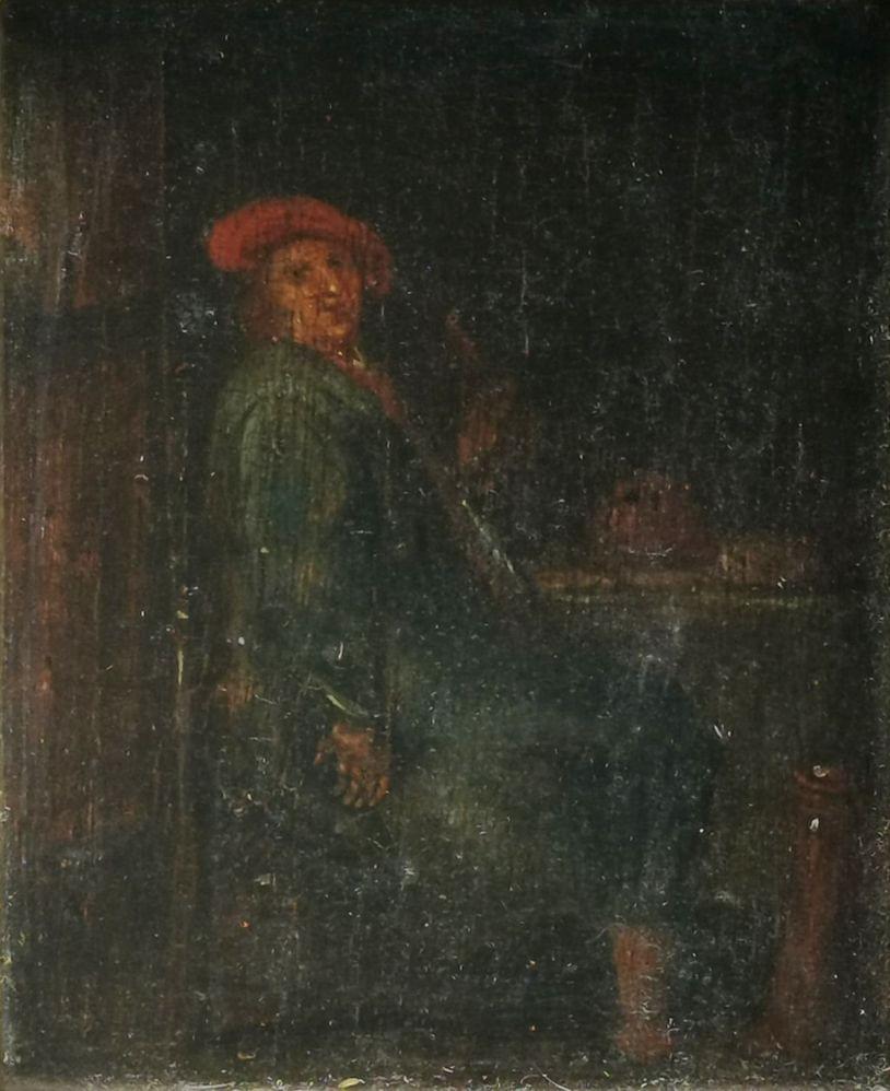 Buveur dans une taverne, huile sur panneau, 15x12 cm