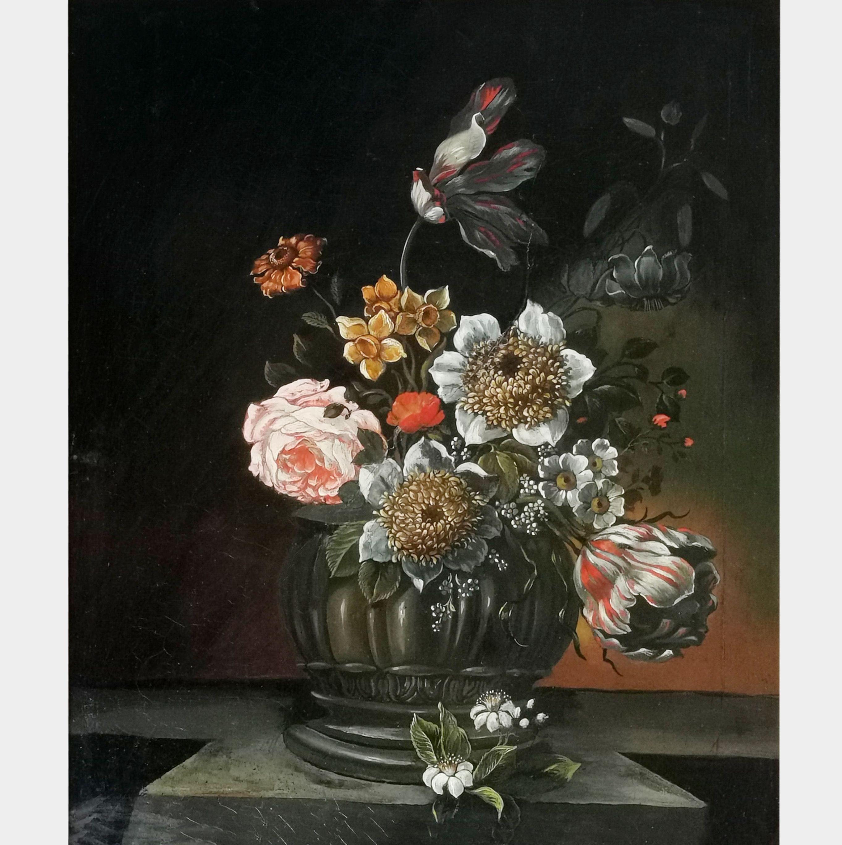 Bouquet de fleurs, huile sur bois, 50x39 cm