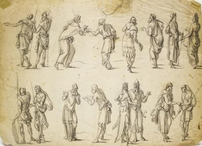 Silhouettes de danseurs, paire de gouaches et aquarelles sur pap...