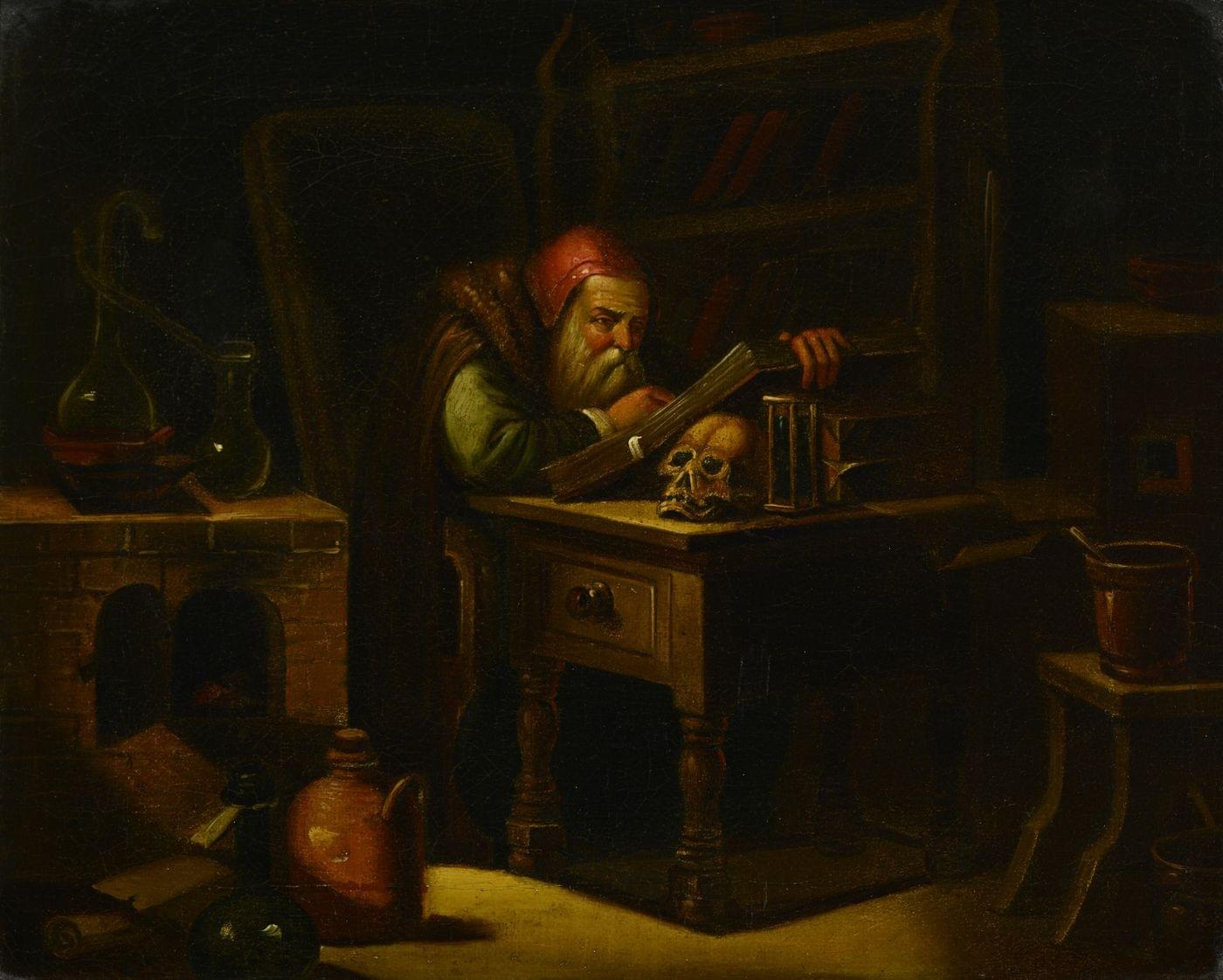 Réunion de personnages près d'une grotte, encre et lavis sur pap...