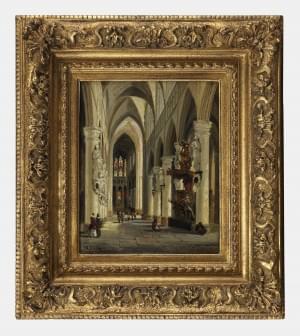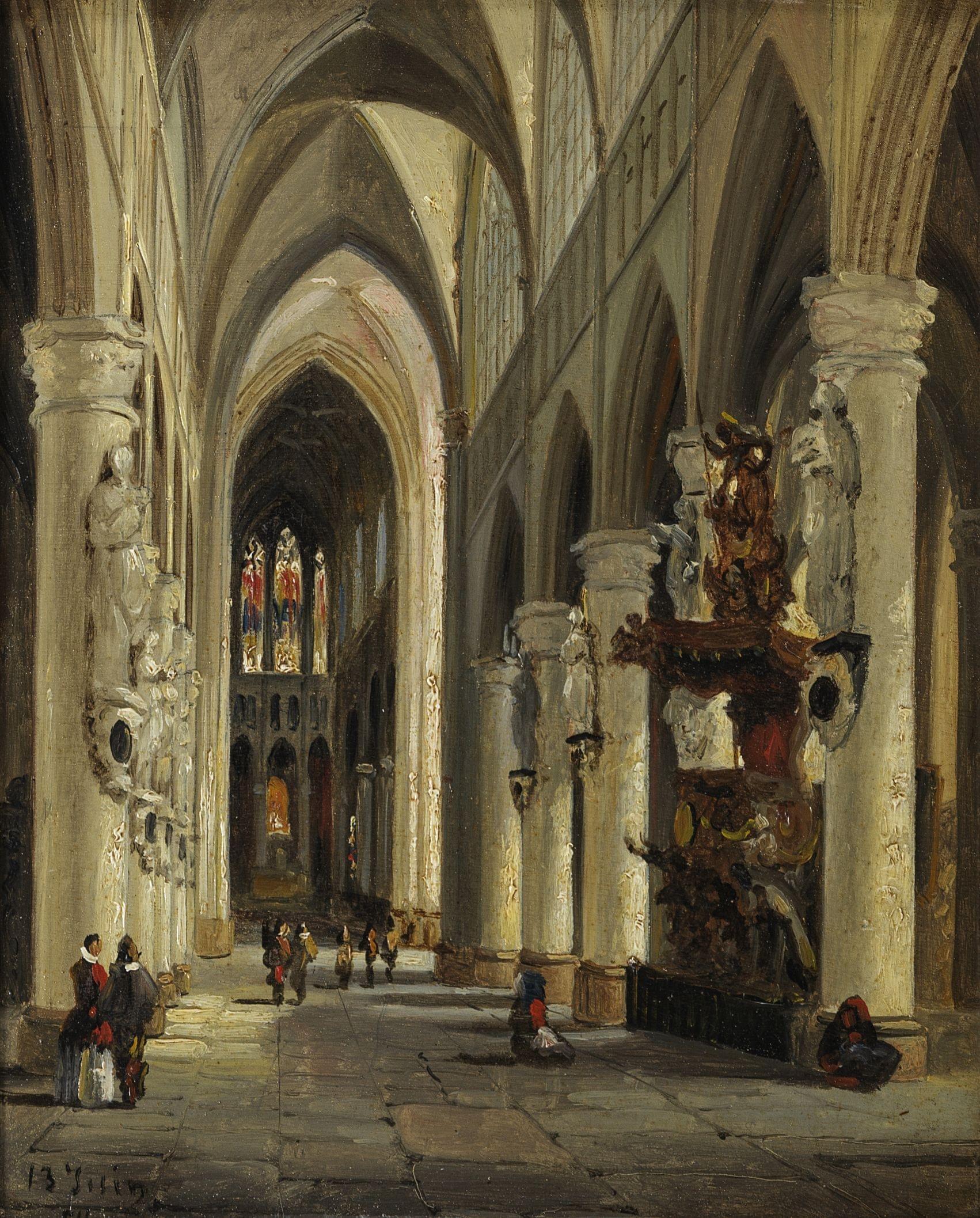 Intérieur d'une église, huile sur panneau, datée 13 juin?, 27x22 cm