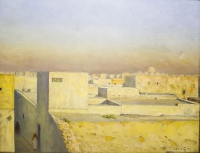 Vue d'une casbah, huile sur toile Paysage oriental, huile sur to...