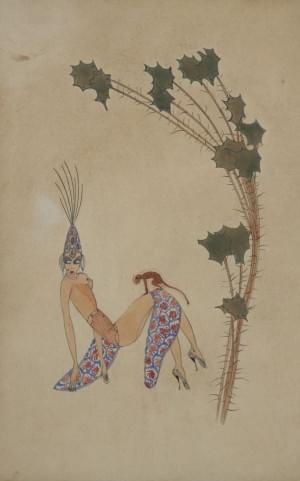Silhouettes de danseurs, paire de gouaches et aquarelles sur pap...