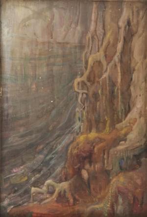 Paysage fabuleux, huile sur panneau, non signée, 16x22 cm