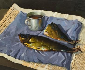 Nature morte au hareng, huile sur carton, 36x44 cm