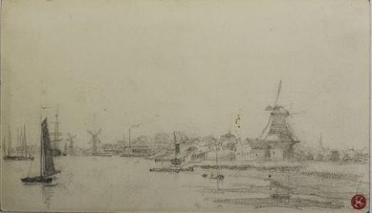 Paysages au bord d'un fleuve, ensemble de 3 dessins à l'encre, lavis et mine de plomb, de 6,5x12 à 11x19,5 cm