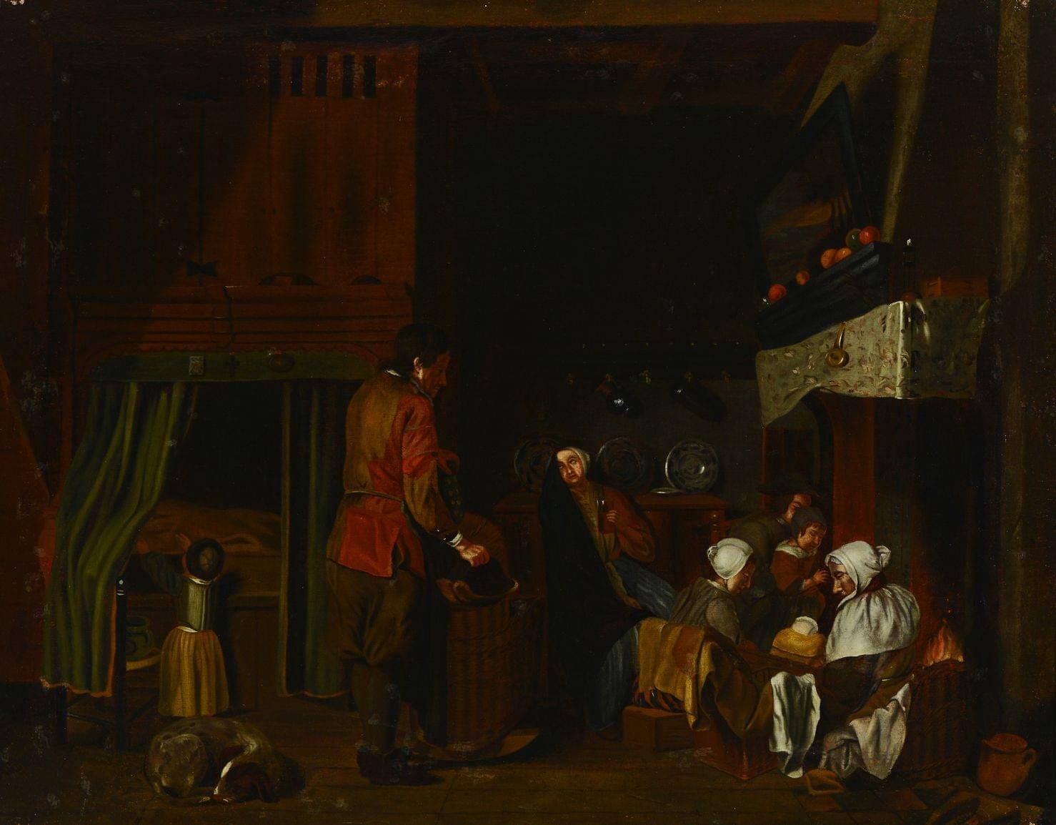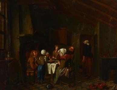 Scènes d'intérieurs, paire d'huiles sur toile, 65x84 cm