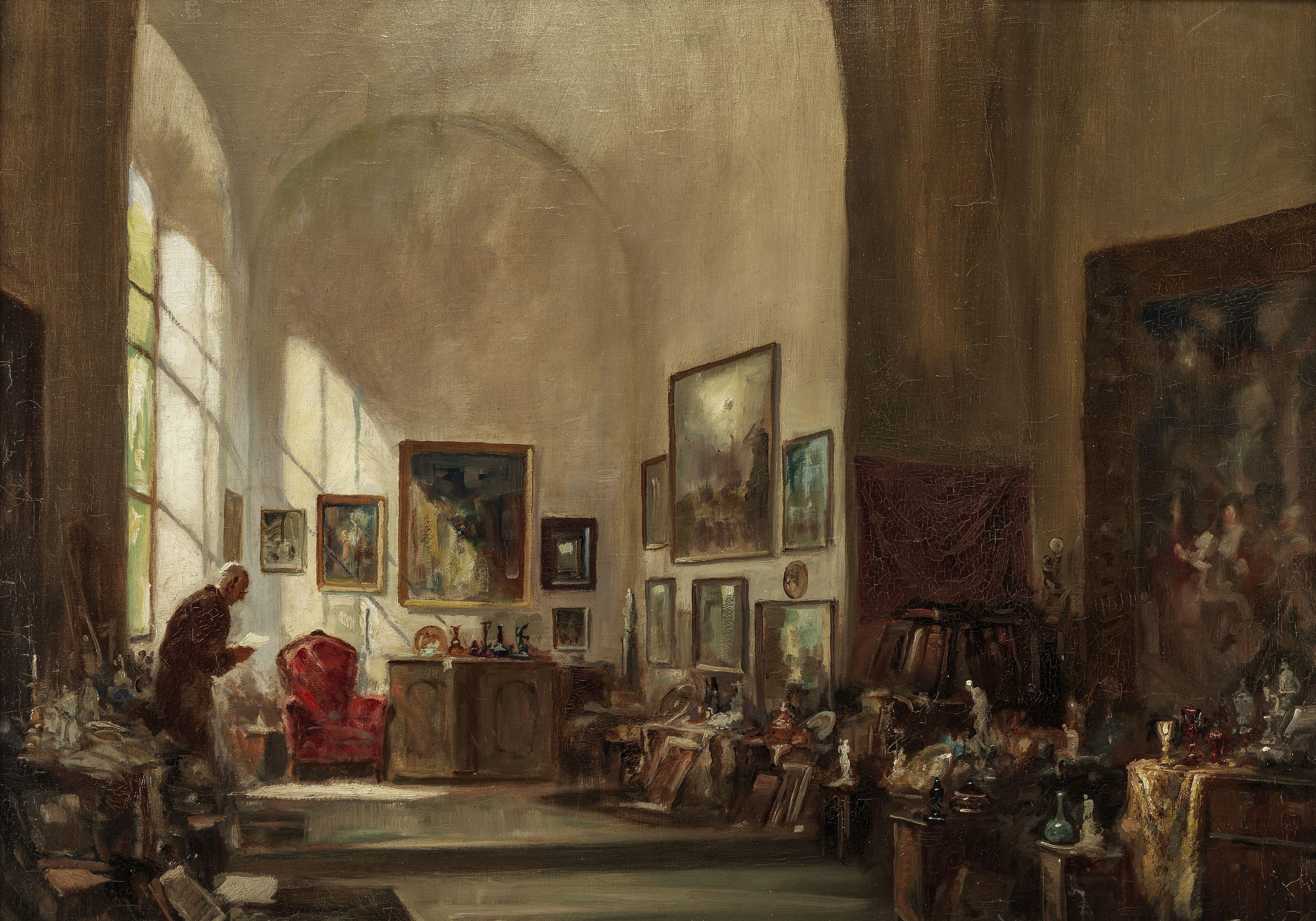 L'antiquaire, huile sur toile, signée, 56x79 cm
