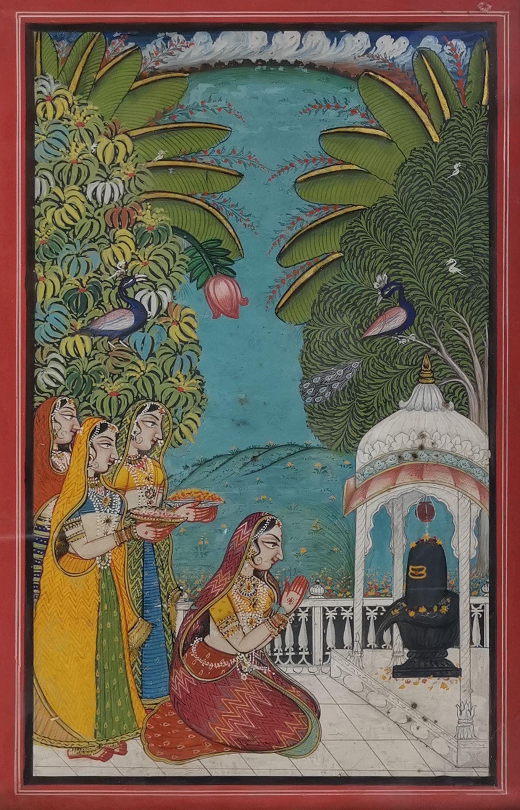 Scène de prière dans un jardin, pigments sur papier, 34x22 cm