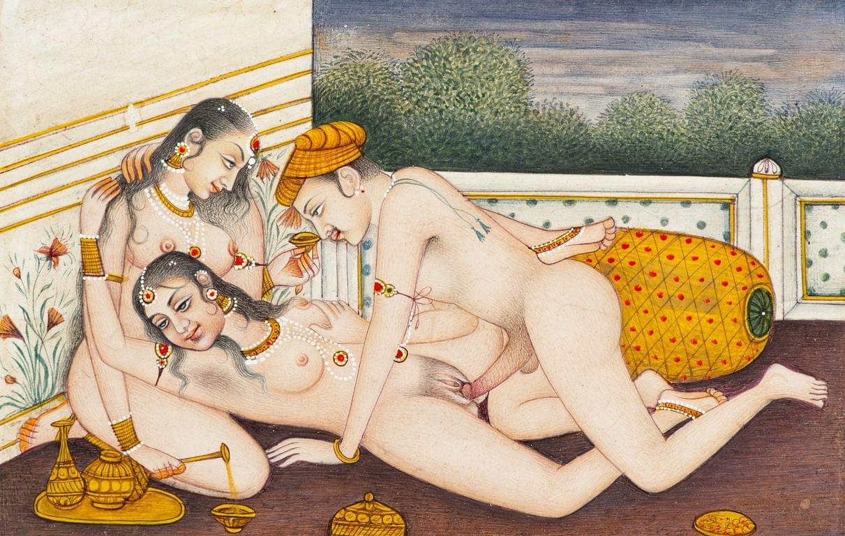 Scène érotique, gouache et feuille d'or, 10x15 cm